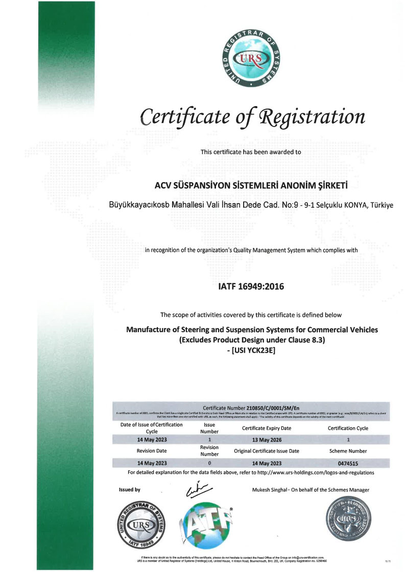 As ACV, to ensure Customer Satisfaction by being aware of our responsibility to the Environment and Human;