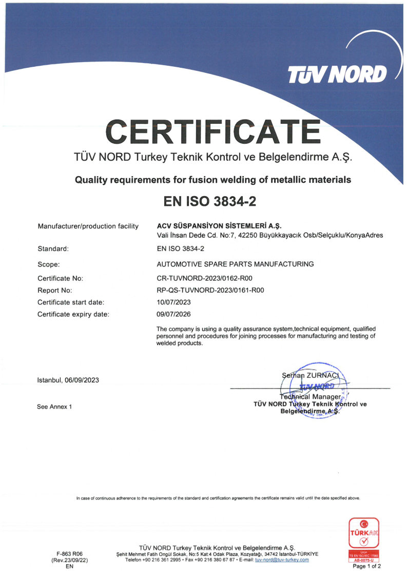 As ACV, to ensure Customer Satisfaction by being aware of our responsibility to the Environment and Human;